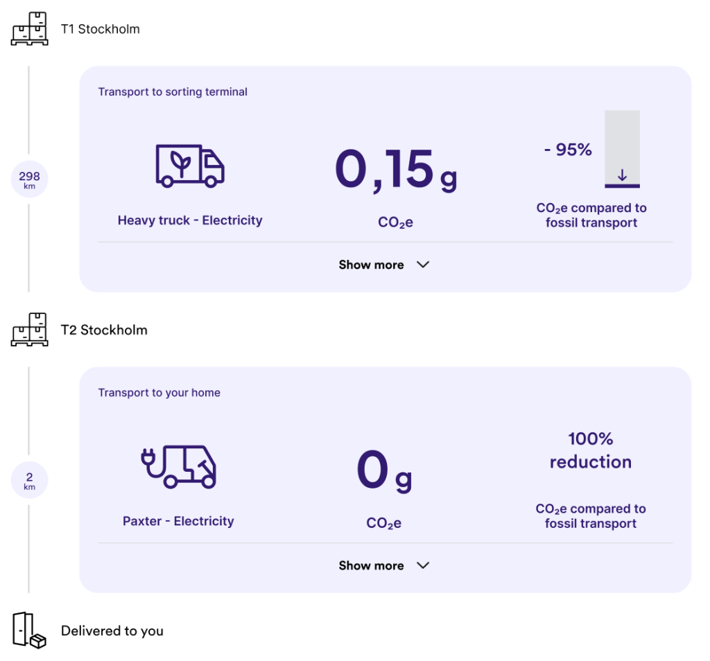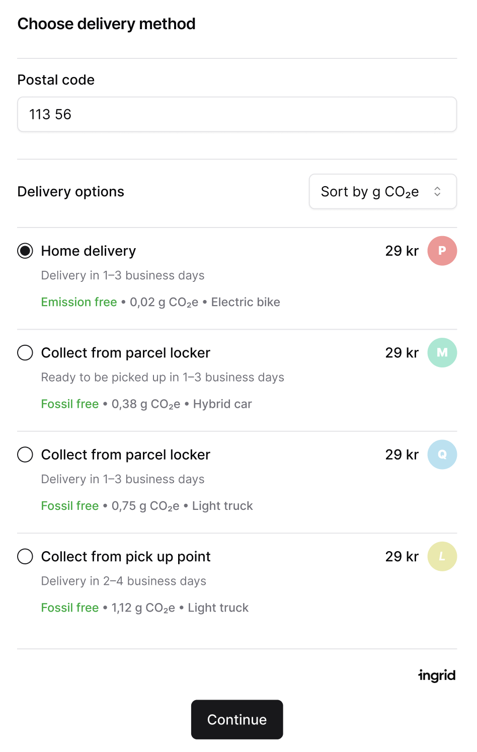 Let your customers see the estimated carbon footprint of a delivery from a specific distribution provider before making a purchase.