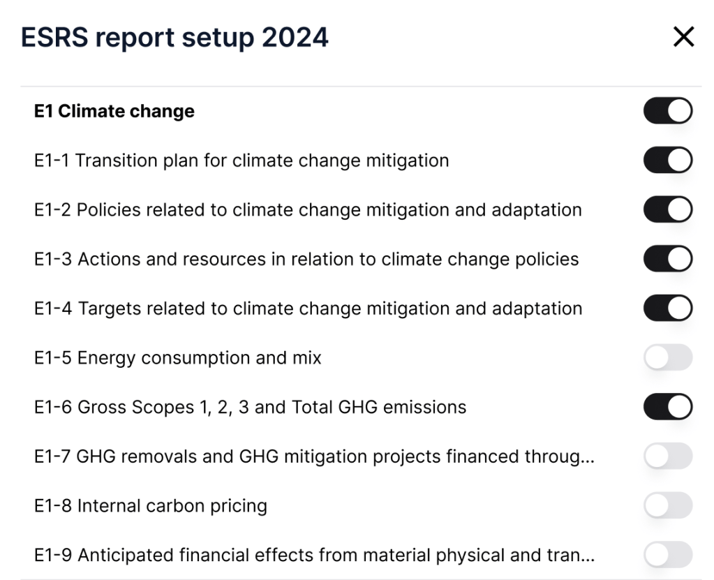 Easily configure your reporting according to the ESRS framework using a double materiality assessment—then start reporting with confidence.