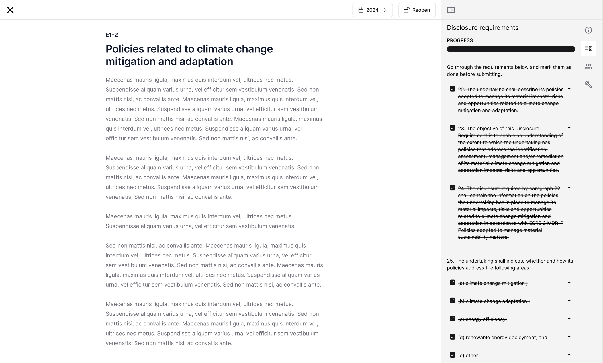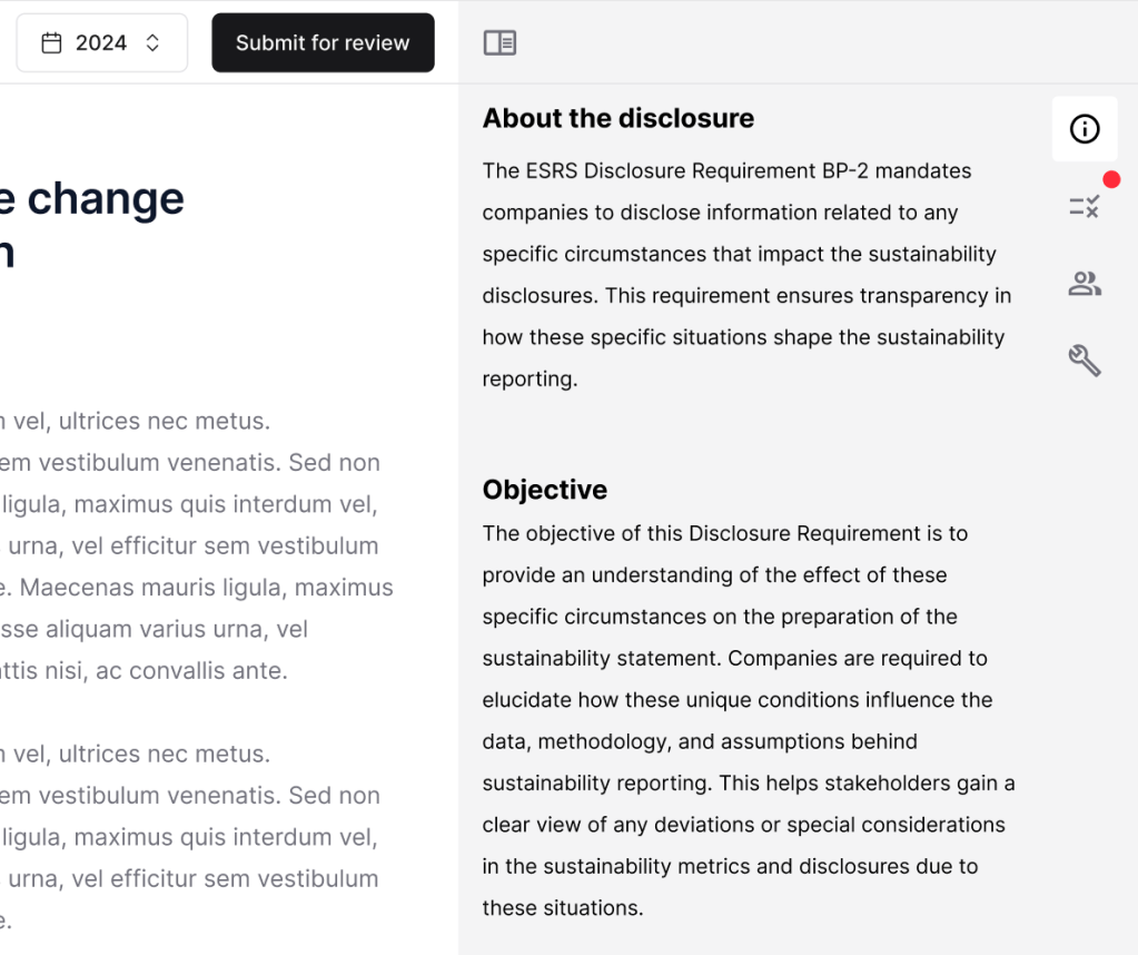 Supercharge your sustainability reporting with the power of AI, comprehensive overview and seamless collaboration.